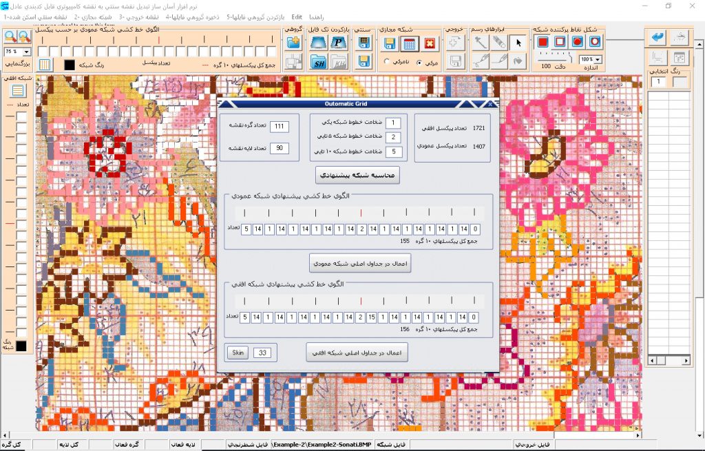 ترسیم بصورت اتوماتیک» اگر شبکه موجود نقشه سنتی اسکن شده دقیق بوده و الگوی انتخابی برشبکه آن منطبق باشد و همچنین رنگ آمیزی نقشه سنتی به کارت رنگ نزدیک باشد می توان با انتخاب حالت اتوماتیک ، نرم افزار بصورت اتوماتیک شروع به شناسایی و ترسیم می کند که این یکی از نقاط قوت و مهم نرم افزار می باشد که در ورژن 6 اضافه شده است